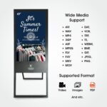 LIMEBERRY Launched 109 cm (43 inch) Digital Signage Standee A Shape Full HD Resolution Screens Led Display (LB431-AU). The 43-inch display showcases vibrant and crystal-clear visuals, ensuring that your content is presented with stunning clarity. The Digital standee’s Modern and Slim Design enhances any environment, while its robust construction ensures durability for long-lasting performance. Easily connect and display content from various sources, including with WIFI, 2 USB drives, 2 HDMI (ARC), LAN, Coax devices, and more, providing flexibility for diverse multimedia. Storage 8 GB & (EXPANDABLE). Video Supports AVI, WAV, MP4, 3GP, ASF, MPEG, FLV, F4V, MKV, MOV, DAT, VOB, TRP, TS, and WEBM, Images Supported BMP, GIF, JPEG, PNG. When it comes to warranty we provide our customer our best 1 Year Comprehensive Warranty on product. You just need to do the following steps: – 1 click Warranty support, on Limeberry for malfunction arising from manufacturing defects.