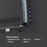 • Connectivity: Dual band Wi-Fi (2.4+5G) for easy connectivity and uninterrupted streaming | 2 way Bluetooth 4.2/5.0 for wireless connectivity | 3 HDMI ports (1 HDMI 2.1 Compatible, HDMI 1 supports eARC) to connect set top box, Blu Ray players, gaming console | Dual USB (3.0 and 2.0) port to plug in hard drives and other USB powered devices | Coax audio jack | 3.5mm earphone jack | AV IN | RJ 45 (Network)